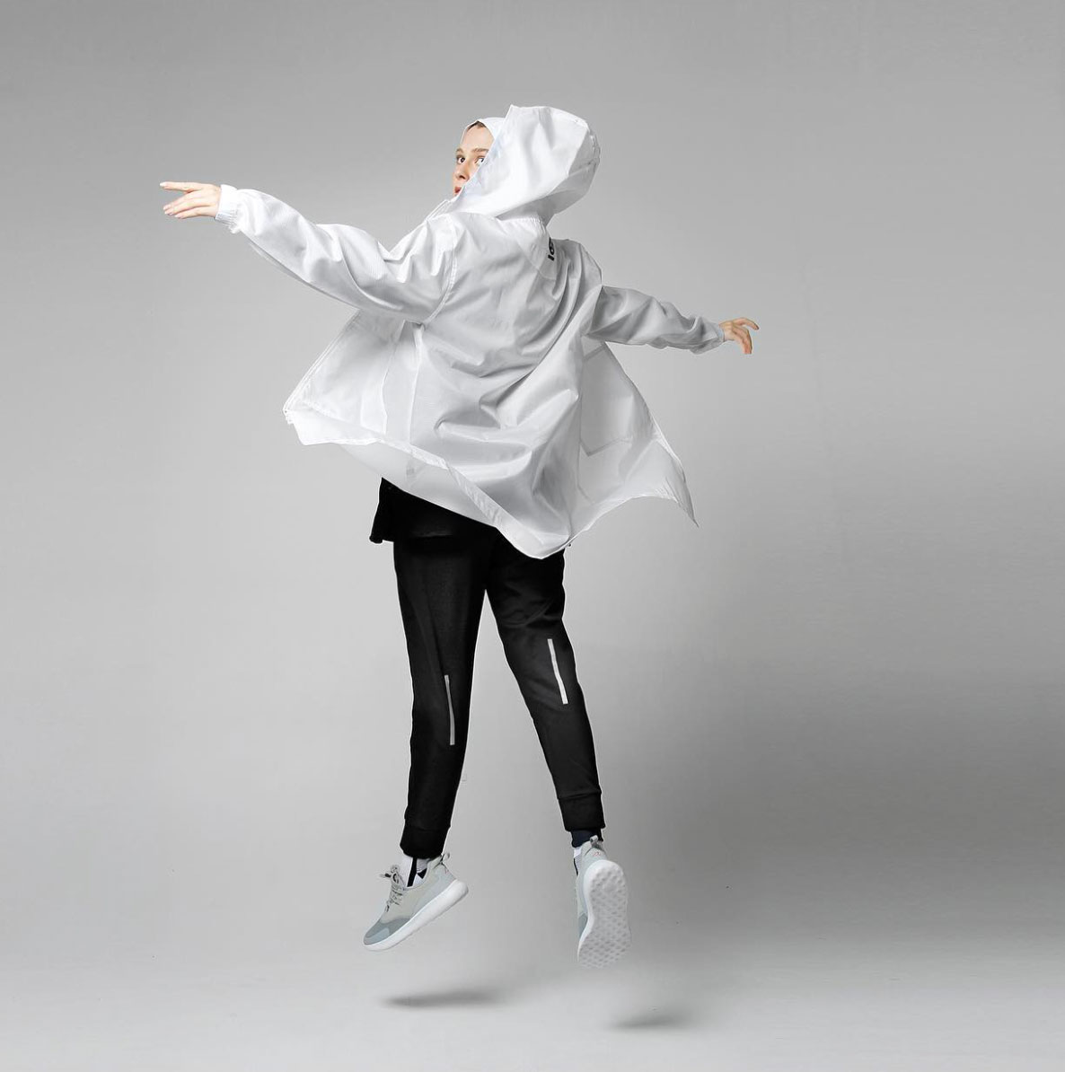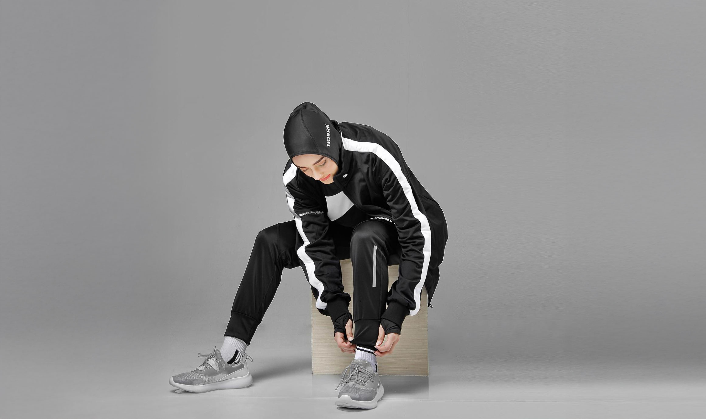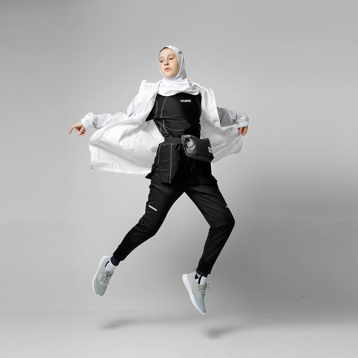 Concept: A product photoshoot and functional fashion editorial. We highlighted NOORÉSPORT’s sleek design using dynamic studio techniques (high-speed jumping) and sharp contrasts (black-and-white and color pop), demonstrating that modern style and adherence can perfectly align in athletic performance.