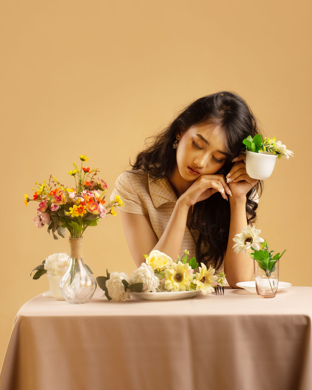 Concept: Using a warm, monochromatic palette, this series functions as a living still life. The concept subverts traditional perceptions of beauty by portraying the deep sense of ennui and melancholy that can exist even within the most beautifully curated settings.